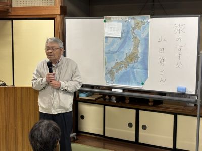 | □□ | 4月10日(金)に佐野公民館でさのまちカフェを開催しました。 今回のゲストは、第一地区の 山田 勇 さんで、「旅のすすめ」と題して これまでの旅先での経験を交えて話されました。 参加者は 44名 (男性:12名)でした。 |