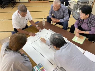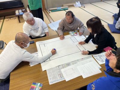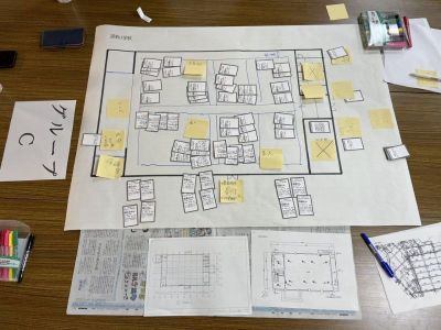 避難先施設内の区分分けなど図面を使って避難所運営の理解を深めました。