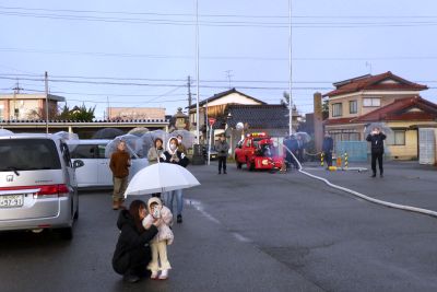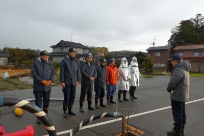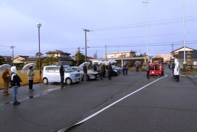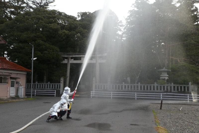 | 能登半島地震の影響で延期されていた出初め式を 狹野神社前で1月7日 午前8時30分から行われました。 自衛消防団員の皆さん、また1年よろしくお願いします。 |