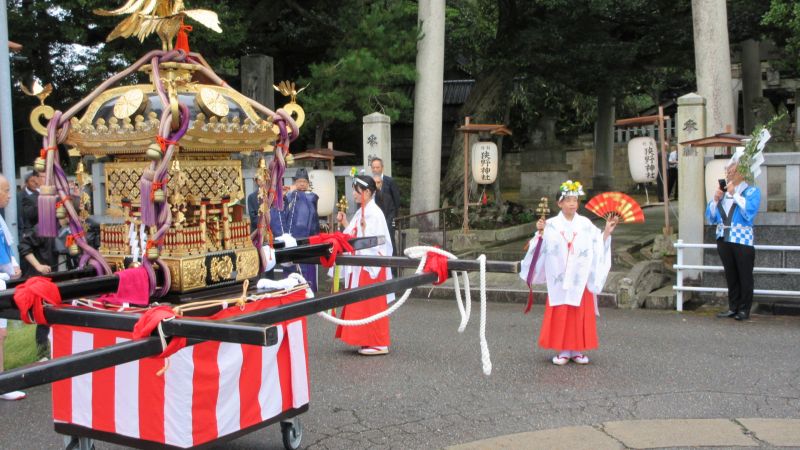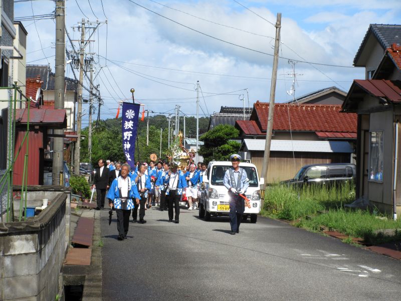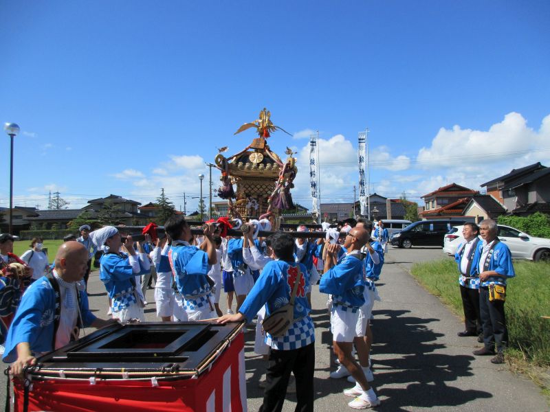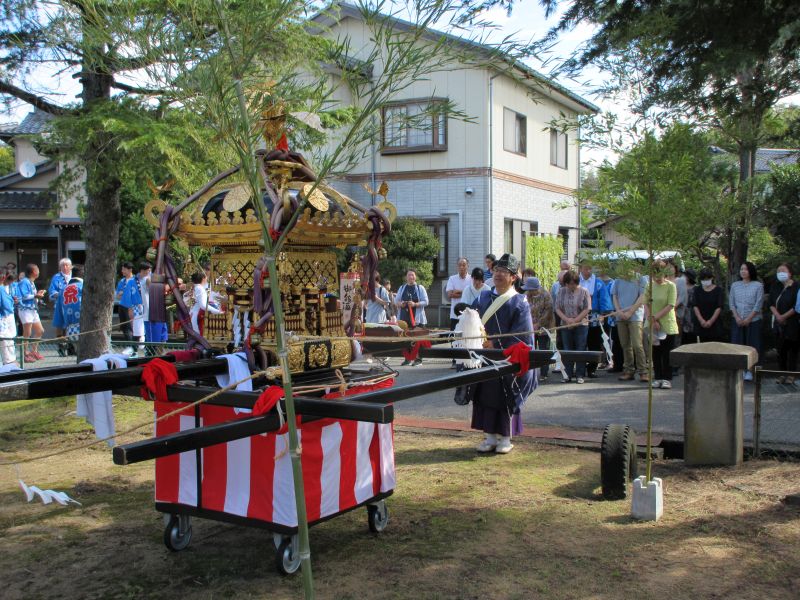 | 第三地区が御神輿巡行の担当をされました。 今年は有志一同による獅子も同行し、各駐輦所で 元気よく獅子舞を披露してくれました。 時々、雨は降りましたが無事に巡行を終える事が出来ました。 関わって頂いた皆様、町民の皆様、ありがとうございました。 |
