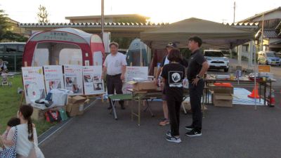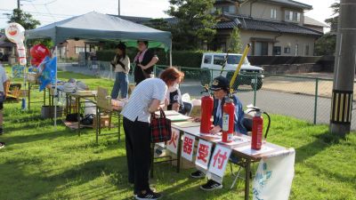 | 自衛消防団による消火器販売受け付け | 防災委員会による防災グッズ、パネルの展示 |
