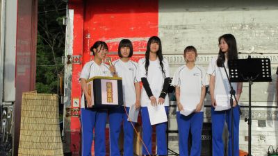 | 司会は高校生有志のみなさん | 小学生によるラジオ体操の案内 |